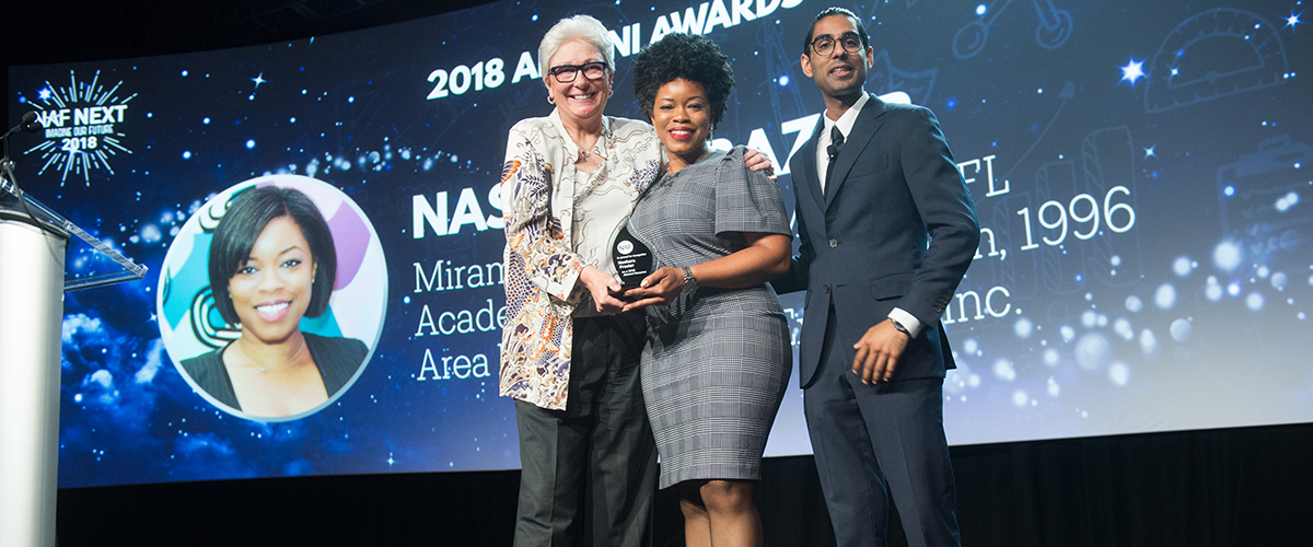 Thank you so very much for this tremendous honor. I accept this award knowing that my life, at this point and time, could have been much, much different without the NAF academy I attended in high school, and without life-changing teachers like Tracy Gerardina and mentors like DeAira Handugan, who nominated me.
